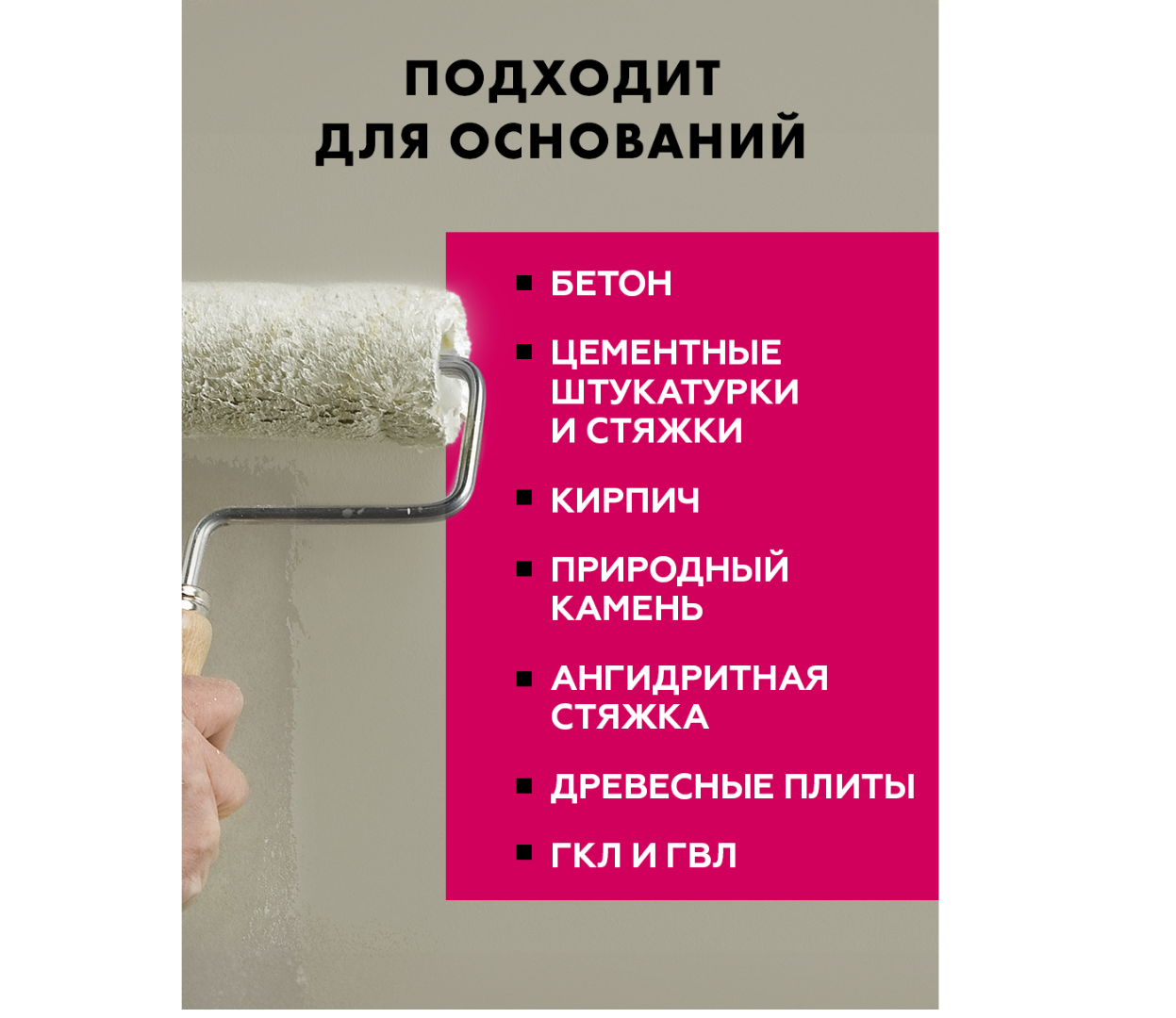 - Пригодна как для внутренних работ, так и для обработки наружных поверхностей.